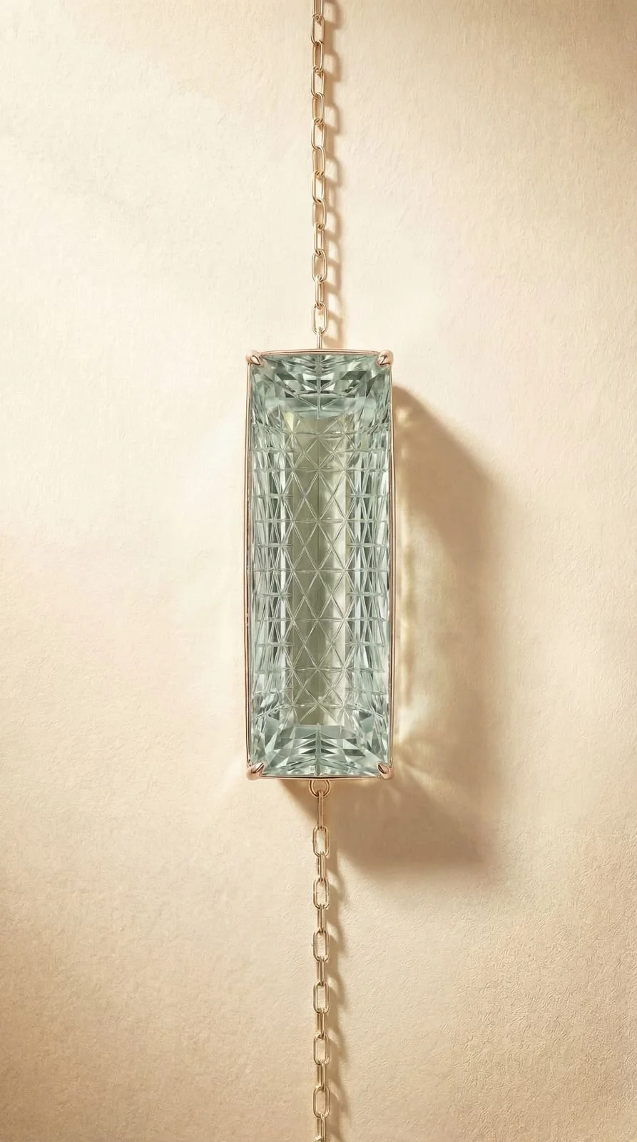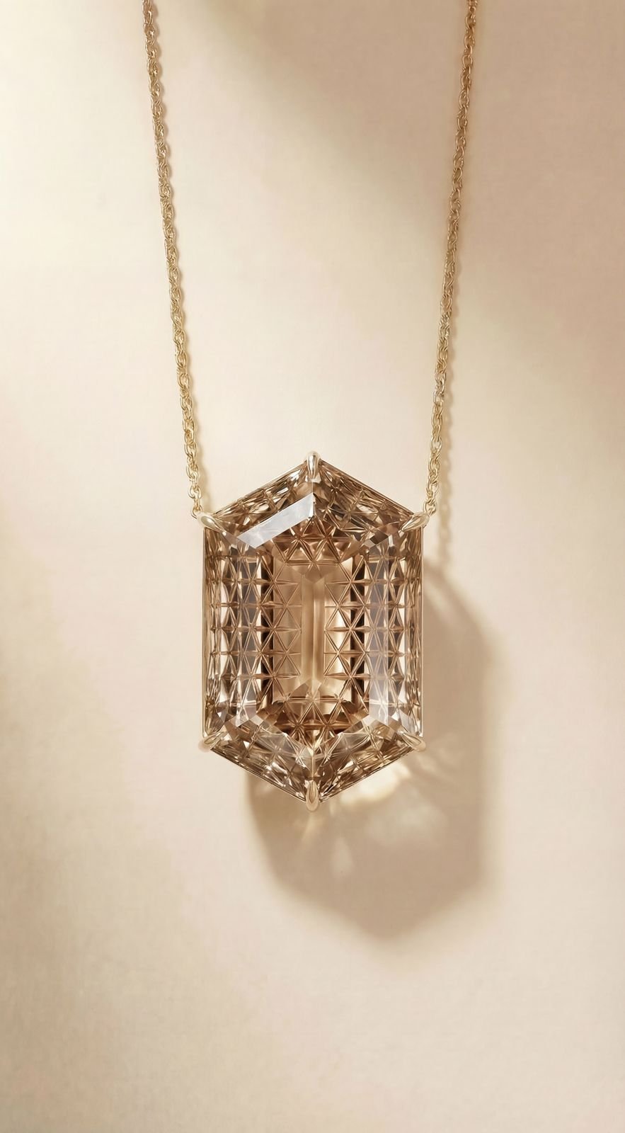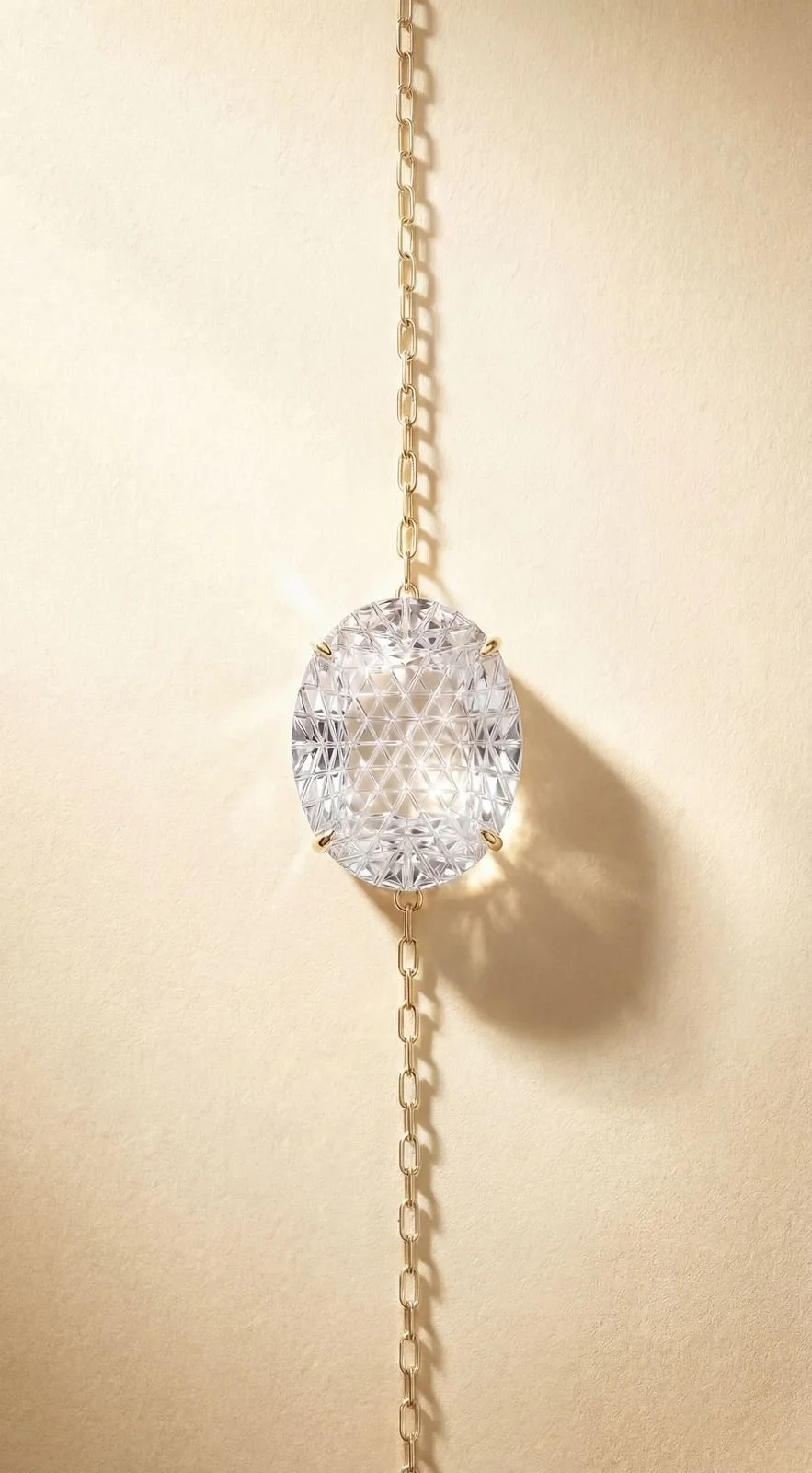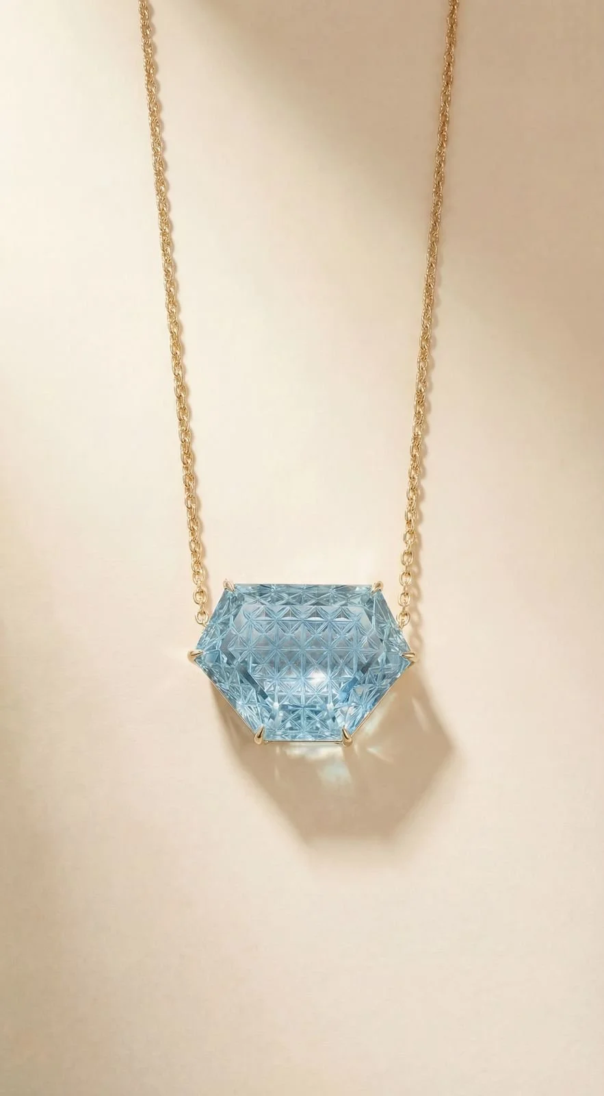 HAND-CARVED INTAGLIO OF WHITE TOPAZ ON 14K CHAIN