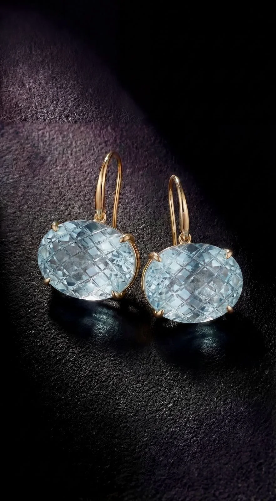 HAND-CARVED INTAGLIOS OF BLUE AQUAMARINE, 14K WIRES